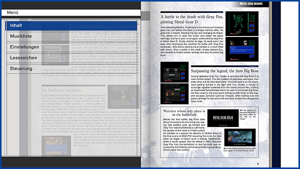 Das Master Book ist ein digitales Buch, das Ihnen weitere Einblicke in die Metal-Gear-Serie gewährt. Es ist voller Spoiler zur Serie und sollte daher am besten nach dem Spiel gelesen werden.