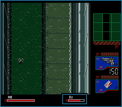 La jauge O2 est affichée en bas de l'écran lorsque vous êtes sous l'eau ou dans une zone remplie de gaz. Quand elle atteint zéro, votre jauge de santé commence à se vider.
