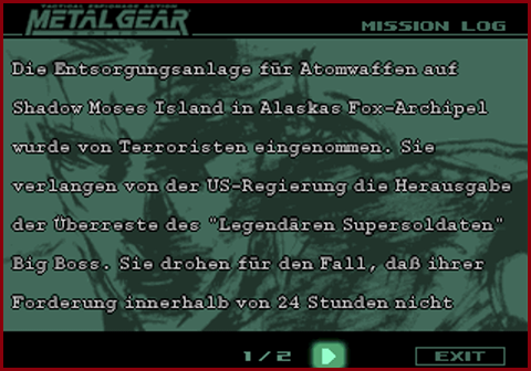 Das Missionsprotokoll bietet eine kurze Zusammenfassung des bisherigen Verlaufs der Geschichte und Ihrer aktuellen Ziele. Es kann nur nach dem Laden von Speicherdaten eingesehen werden.