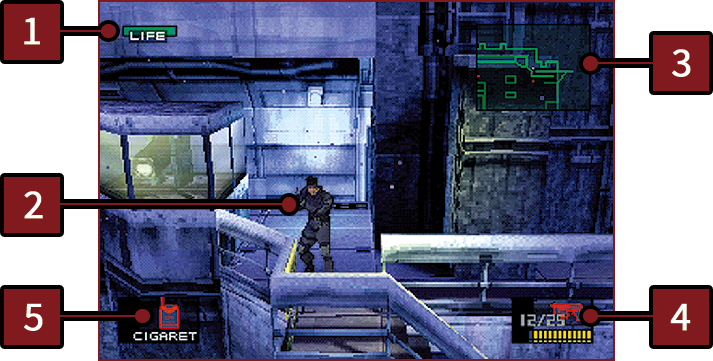| Cono verde | La vista desde la perspectiva de Solid Snake. |