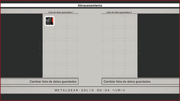 Este juego cuenta con ocho listas de datos guardados, cada una con hasta 15 ranuras de guardado. Algunos datos, como las fotografías, usan 2 ranuras al guardarse.
