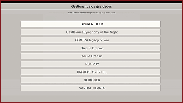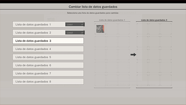 Crea datos guardados virtuales de títulos anteriores. Los datos guardados virtuales de otros juegos no se pueden cargar ni jugar.