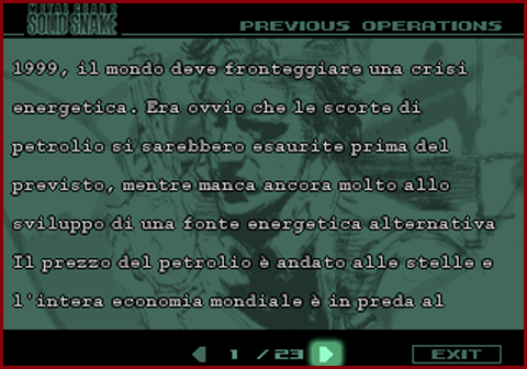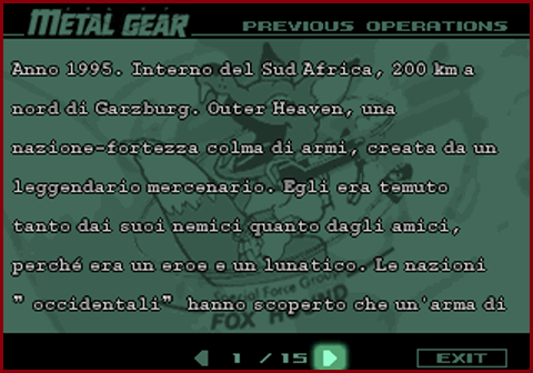Visualizza un resoconto della storia dei giochi Metal Gear e Metal Gear 2: Solid Snake.