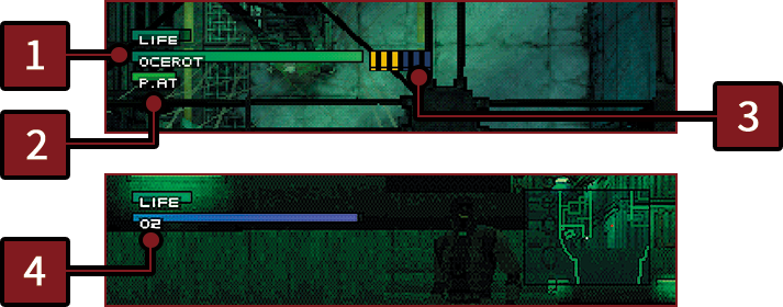 - Muestra la cantidad de munición que le queda a Revolver Ocelot. Cuando llegue a cero, dejará de moverse para recargar.