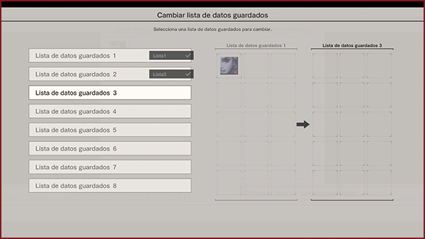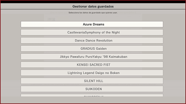 Crea datos guardados virtuales de títulos anteriores. Los datos guardados virtuales de otros juegos no se pueden cargar ni jugar.