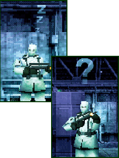 En mode Infiltration, les ennemis suivent généralement un itinéraire précis, utilisant leurs yeux et leurs oreilles pour repérer tout ce qui sort de l'ordinaire sur leur chemin. Il arrive cependant que certains d'entre eux s'arrêtent pour faire une sieste...
