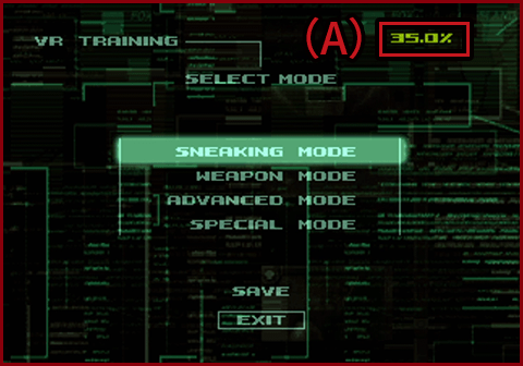 | SAVE | Verwenden Sie einen Speicherplatz, um Ihren Fortschritt beim VR-Training zu speichern, z. B. gelöschte und spielbare Stages, sowie Ihre besten Zeiten für jede Stage und Tastenkonfigurationen (1 Speicherplatz erforderlich). Wenn Sie Daten in der Speicherdatenliste gespeichert haben, gelangen Sie durch Auswahl von VR TRAINING zum Bildschirm „Daten laden“. |