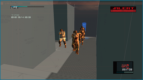 Üben Sie Stealth-Taktiken in einem virtuellen Raum (nur der FIRST PERSON VIEW MODE weicht ab). Die Stages haben für jeden Spielmodus unterschiedliche Abschlussbedingungen.