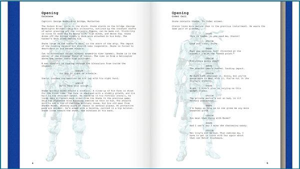 The Screenplay Book is a digital book that contains all the in-game story scenes and codec conversations. It also contains some work-in-progress story elements.