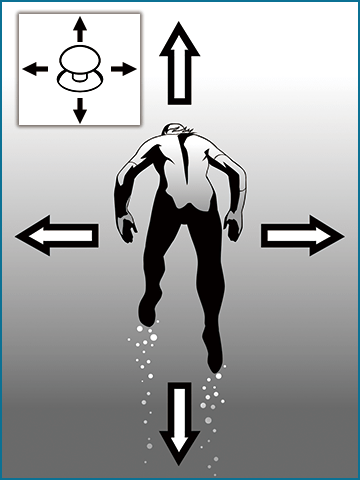 Nager (Appuyer plusieurs fois) Augmentez la vitesse (Maintenir la touche enfoncée) Nagez lentement |