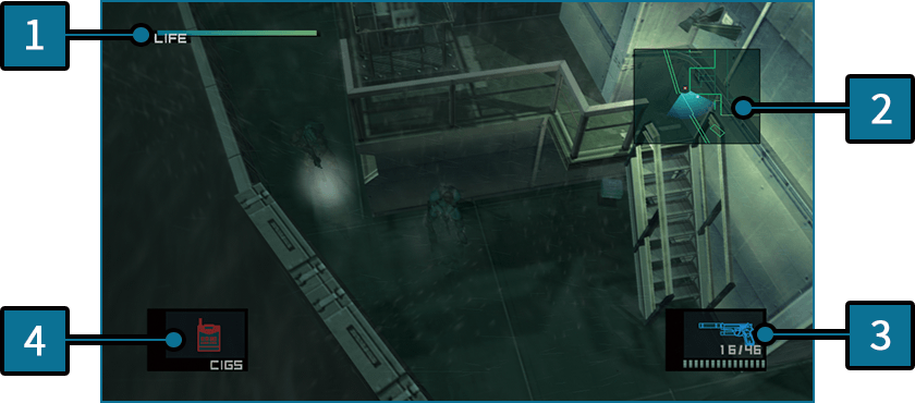 | Point central | Il s'agit du joueur (Snake/Raiden). |