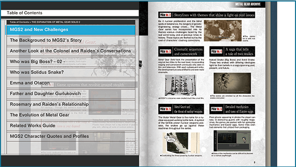 Le Master Book est un livre numérique qui vous donne des informations au sujet de la licence Metal Gear. Il est rempli de spoilers, il vaut donc mieux le lire après avoir terminé le jeu.