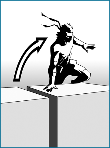 a contatto con una ringhiera per scavalcarla e aggrapparti dal lato opposto. Usa