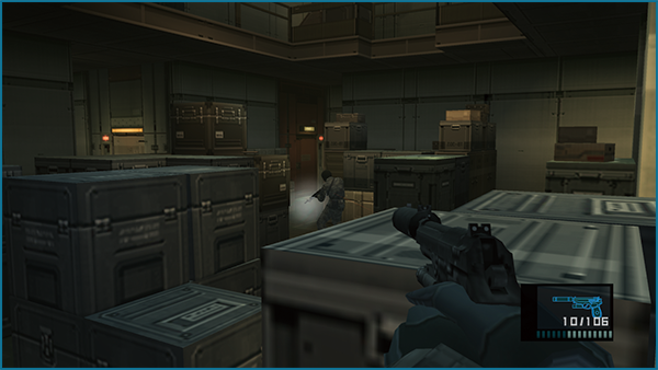 per estrarre l'arma e rilascia per attaccare. La visuale in soggettiva ti permette di mirare a bersagli normalmente inaccessibili dalla visuale dall'alto, consentendoti di colpire i punti deboli dei nemici, danneggiare le radio per impedire l'arrivo dei rinforzi ed eseguire altre manovre utili.