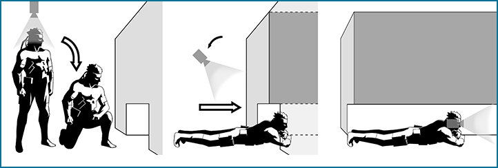 verso determinati muri o angoli per appiattirti su di essi, modificando l'inquadratura.