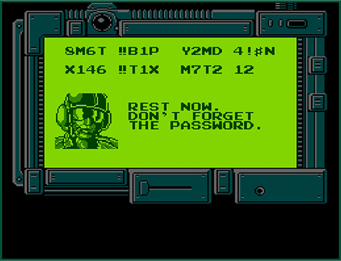 pour ouvrir l'écran de saisie du mot de passe. Saisissez le mot de passe, puis sélectionnez «END». Si le mot de passe est correct, vous reprendrez la partie là où vous l'aviez laissée précédemment.